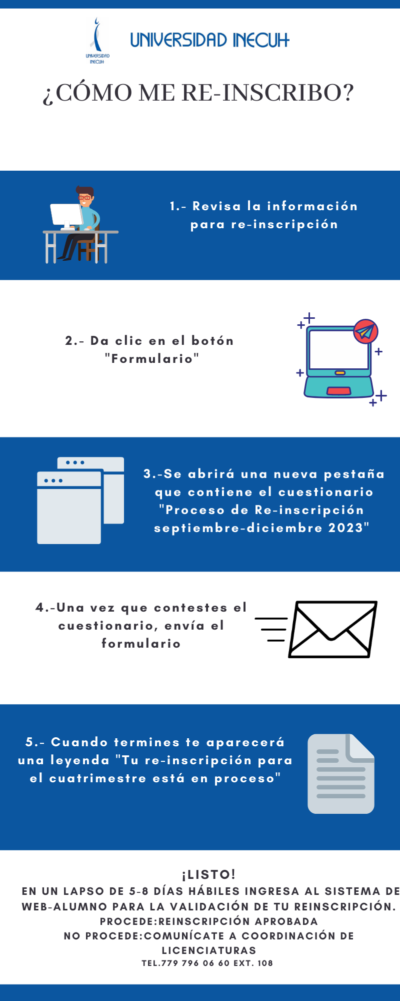 Mayor información comunicarse al 779 796 06 60, ext.108 o a través del correo coordinacion.licenciaturas@inecuh.edu.mx